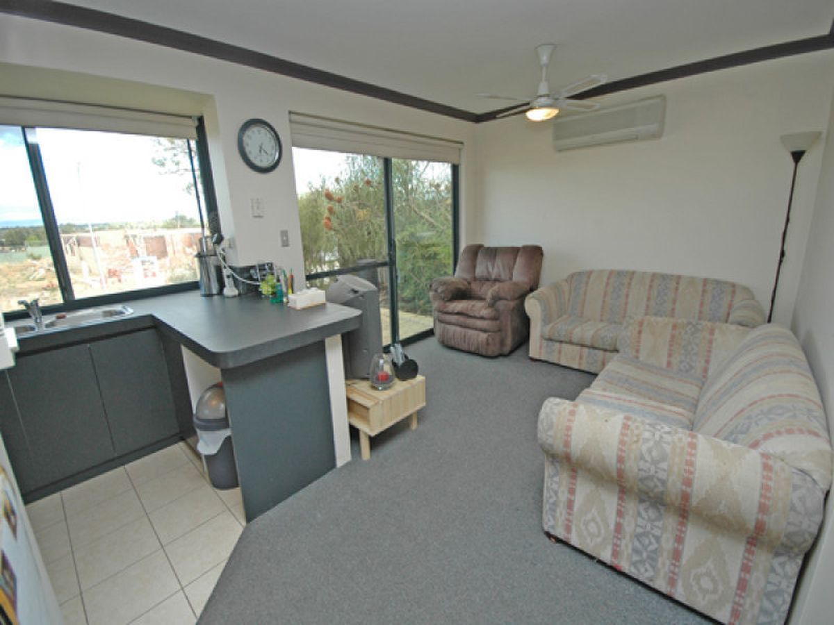This six years old home is fully rendered and has a colourbond tin roof. The house has been cleverly designed and positioned on this corner block that sits up very high from the road so the view from every window looks out over Bertram towards the hills!