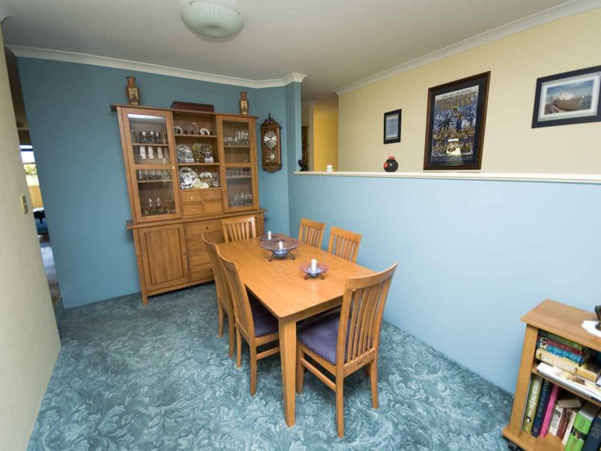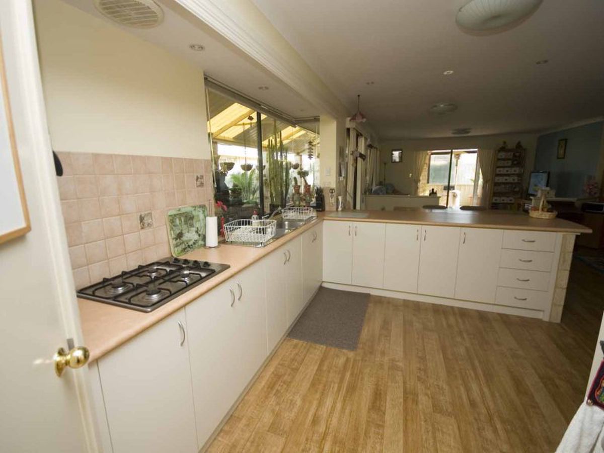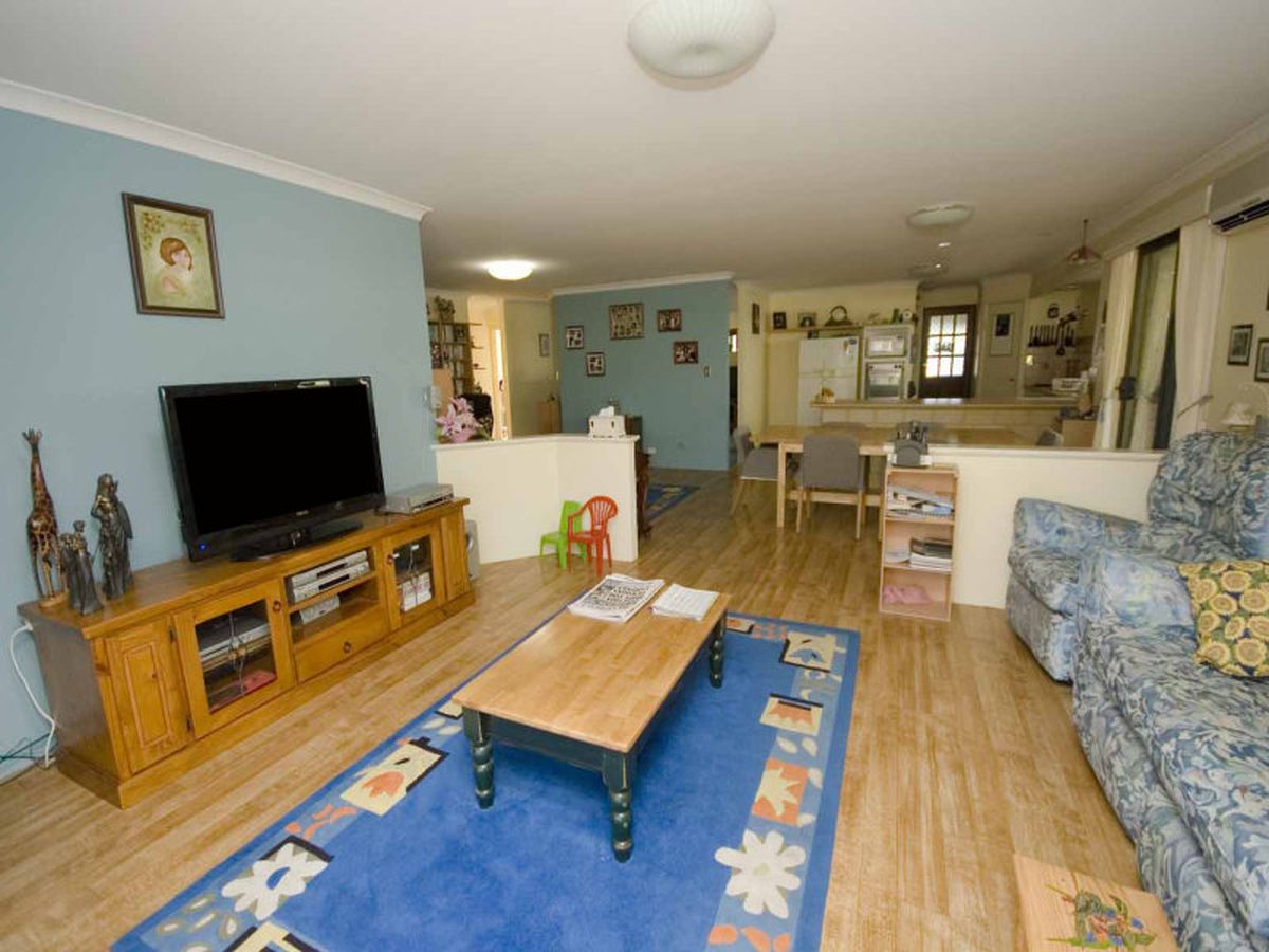 It has a sunken formal lounge and dining area at the front of the home and opens into a large, open plan, living area that is kept cool with a split system air conditioner.