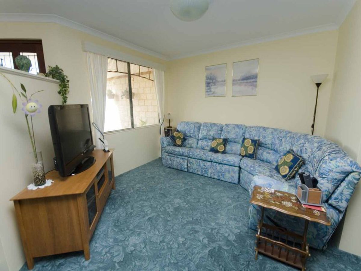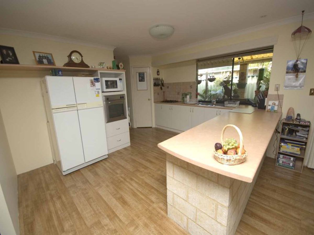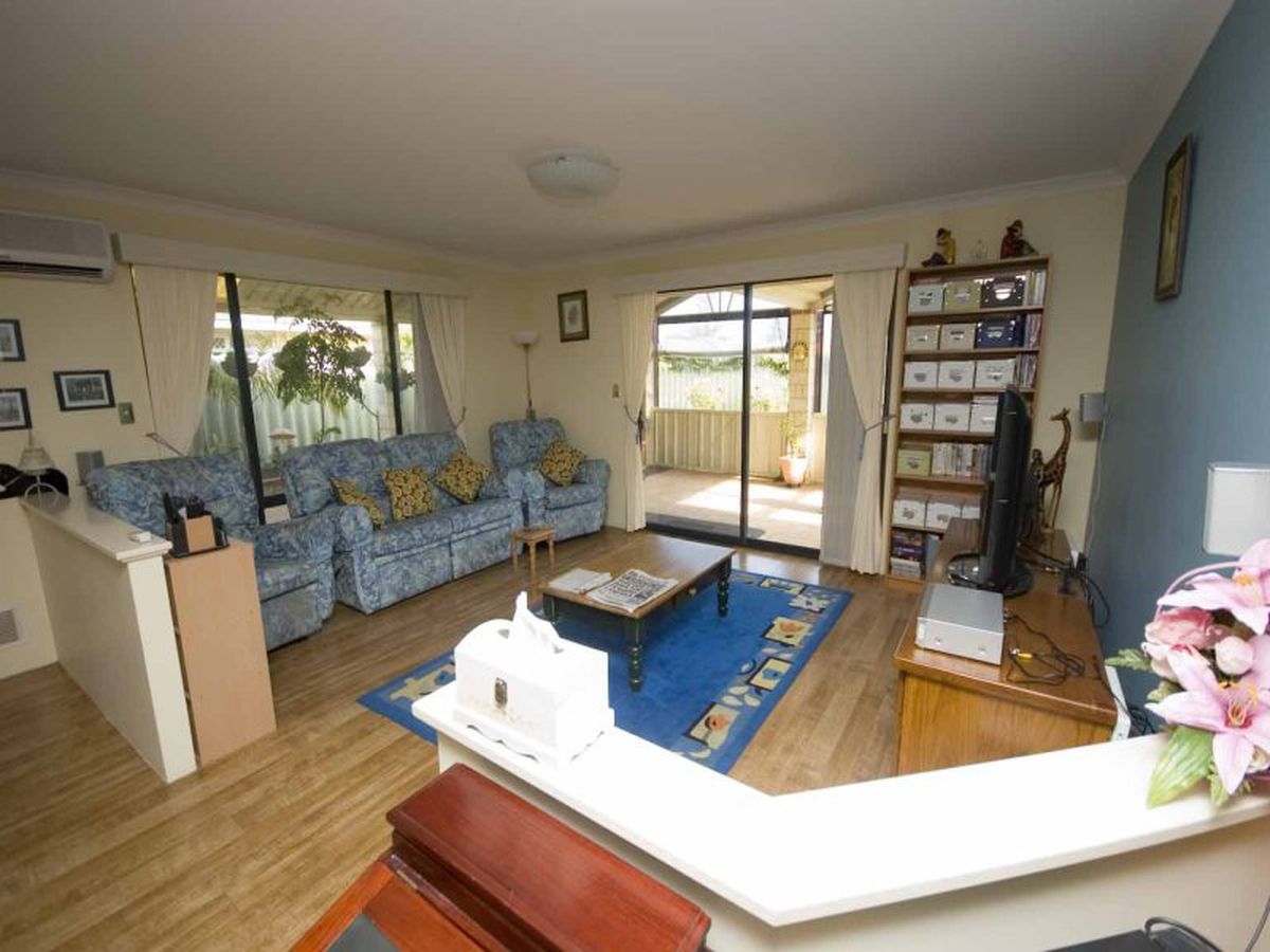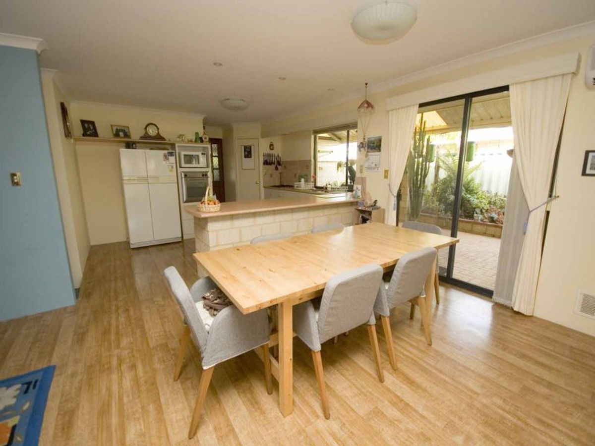 It has a sunken formal lounge and dining area at the front of the home and opens into a large, open plan, living area that is kept cool with a split system air conditioner.