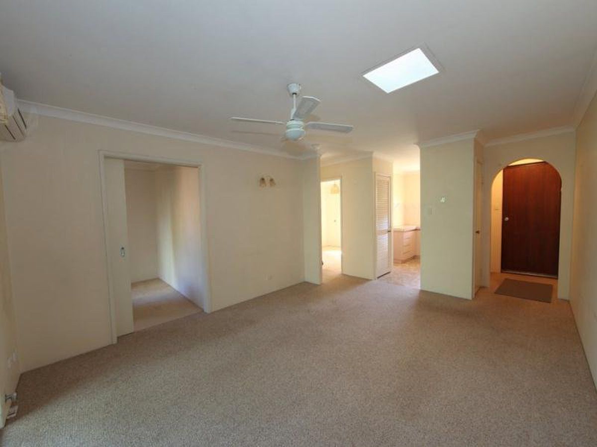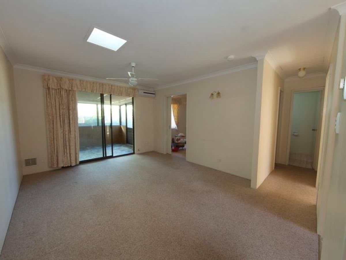 - Large living area with split system air conditioner and ceiling fan