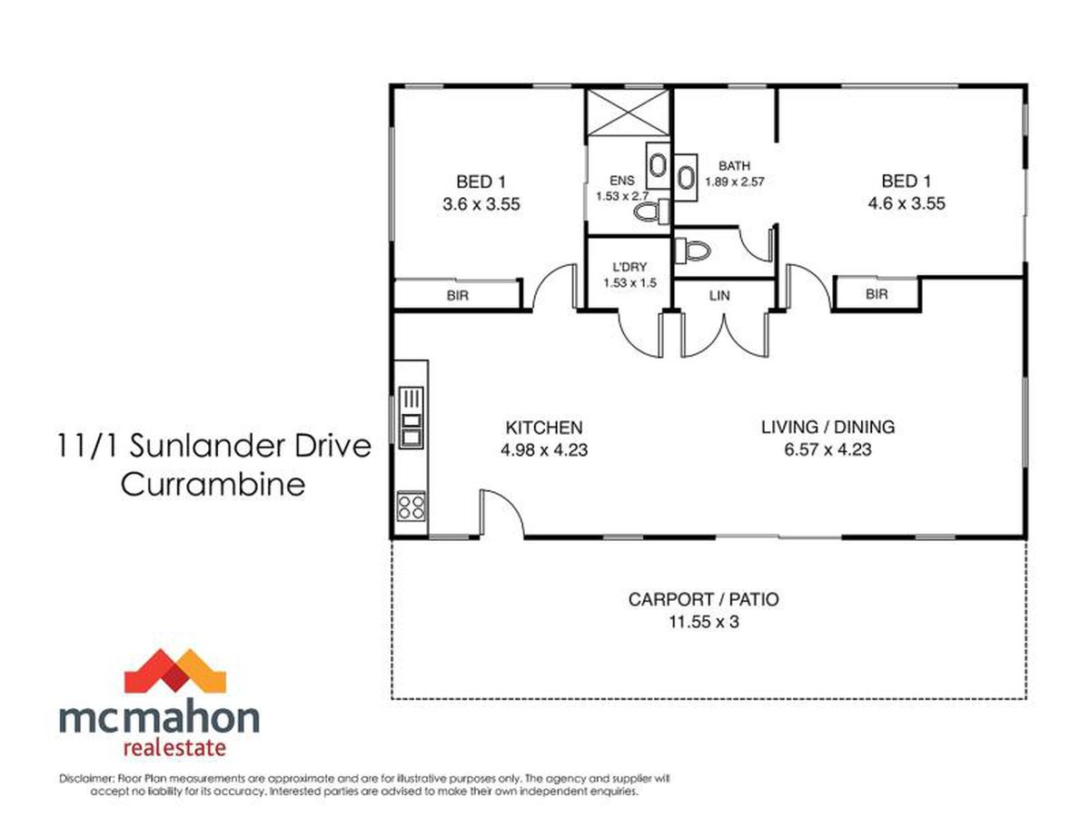 - Generously sized open plan kitchen/dining/living area with air conditioning unit and ceiling fan