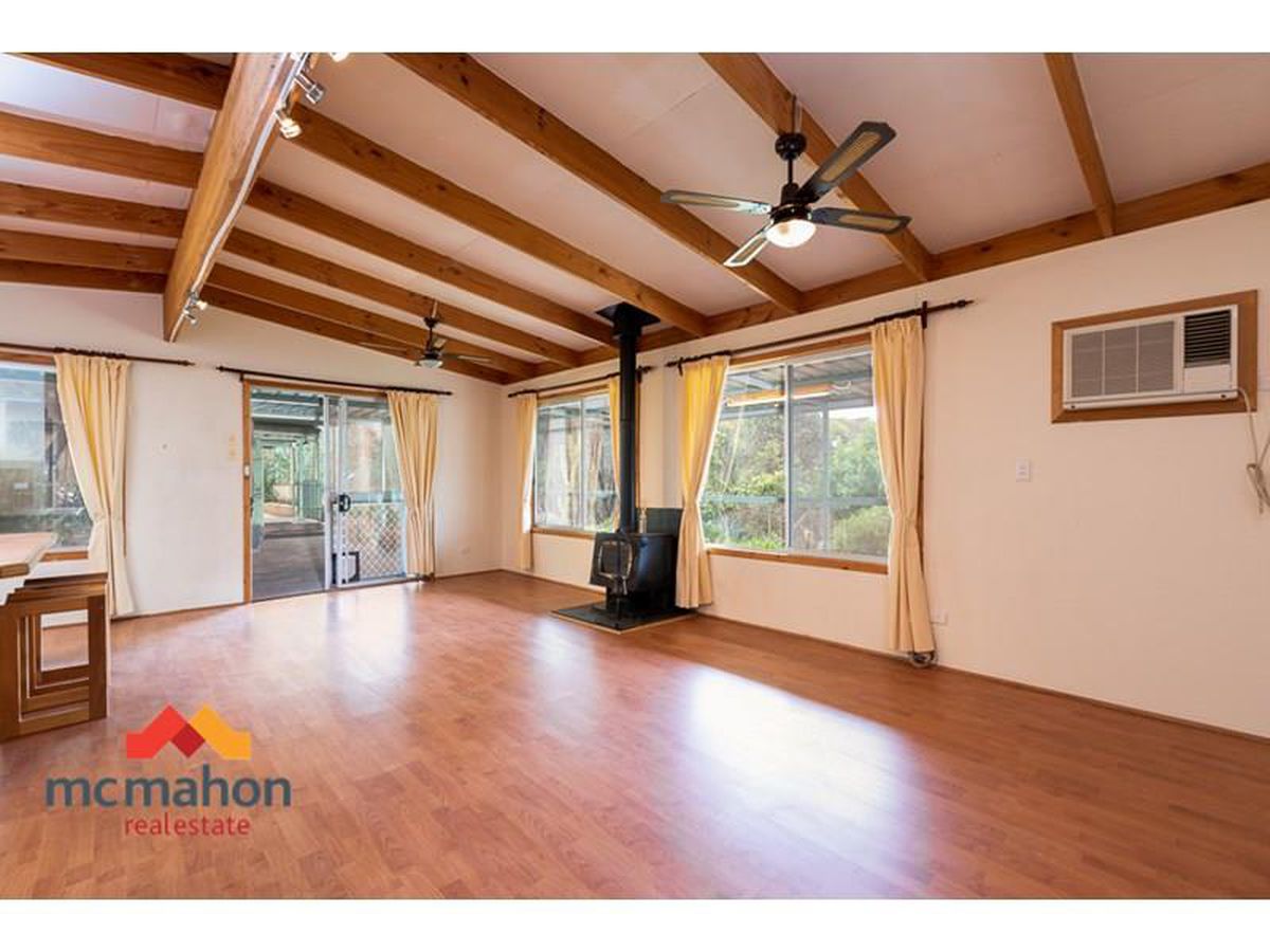 - Open plan kitchen/dining/living with ceiling fans, wood fire heater and air conditioning unit